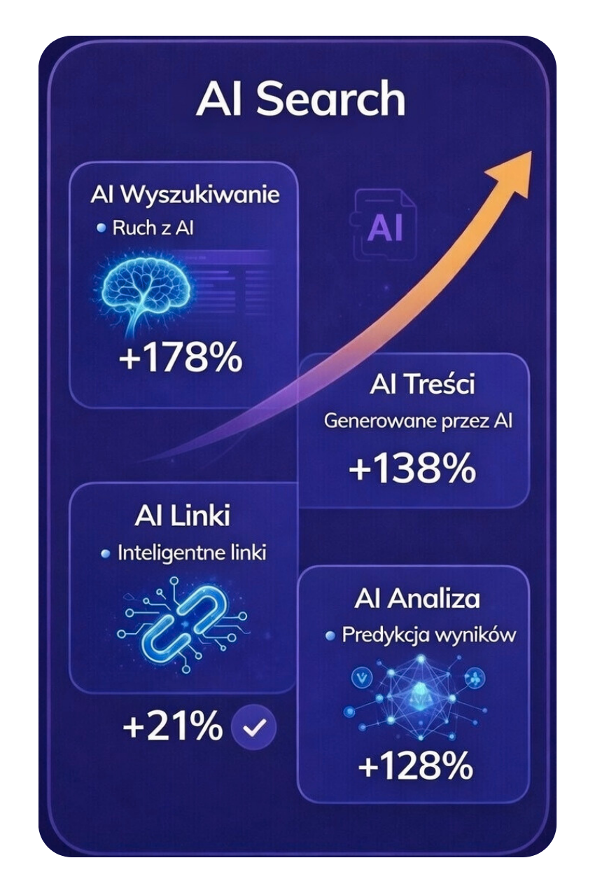 To świetne rozwiązanie dla e-commerce z szeroką ofertą, gdzie liczy się widoczność kategorii, poradników, porównań i odpowiedzi na pytania “przed zakupem”. Sprawdza się też w B2B, bo tam decyzje są oparte o research i argumenty, a nie impuls. Szczególnie polecamy AI Search firmom, które chcą być rozpoznawalne jako ekspert w swojej niszy, a nie tylko “kolejny sklep z tym samym”. To także dobry kierunek dla marek planujących ekspansję, bo porządek w treściach i strukturze łatwiej przenieść na kolejne rynki. Jeśli firma ma już podstawy SEO, AI Search działa jak dodatkowa warstwa przewagi w widoczności i zaufaniu.